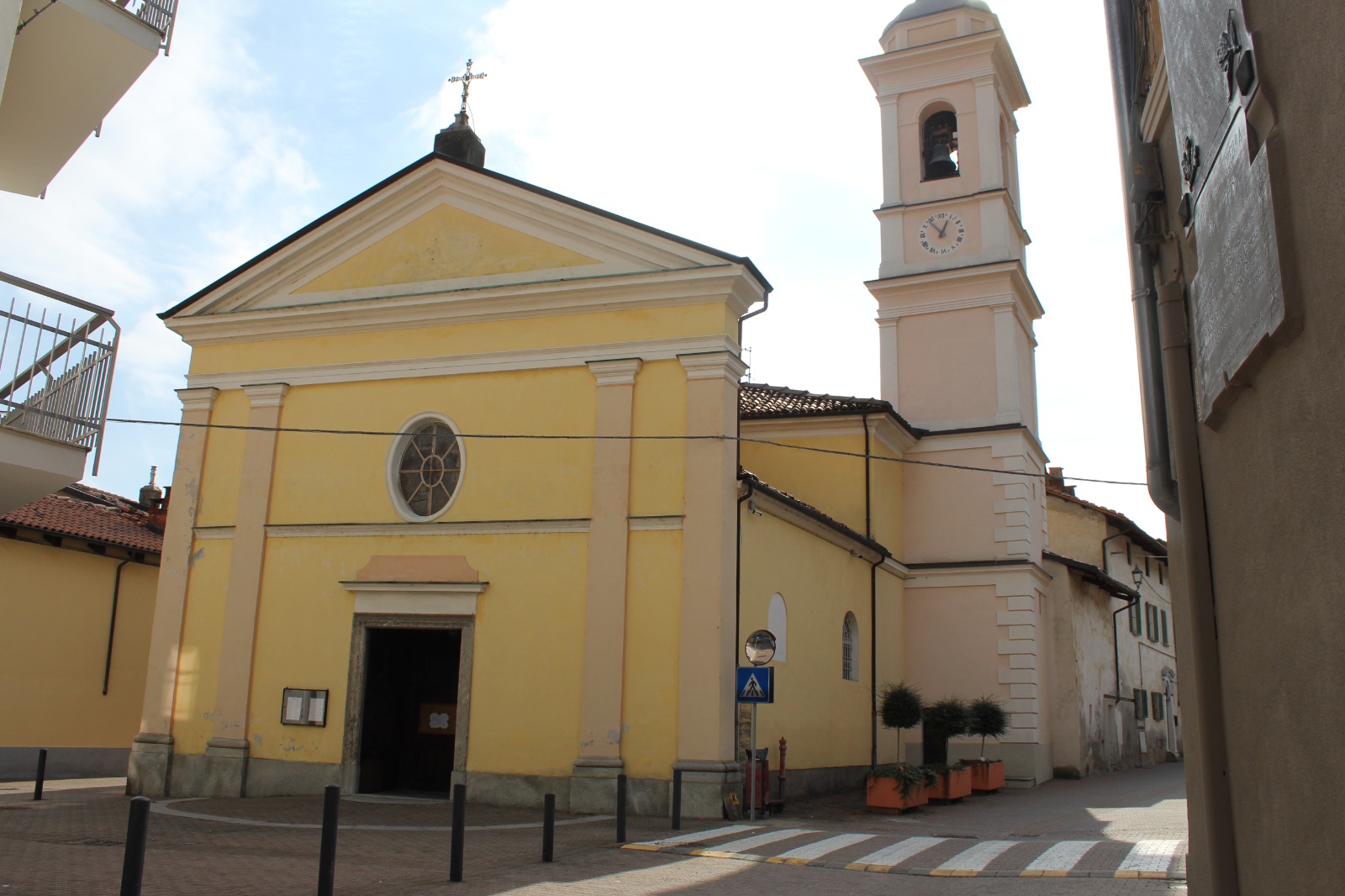 Per quanto concerne il campanile c’è una curiosa nota del Bertoloti in "Passeggiate nel Canavese" nella quale si legge: "Nel 1844, ottenuto il diritto di Parrocchia, il Comune pensò di fabbricare il campanile sulla rovinata torre: il Sindaco ed i Consiglieri si portarono tosto a Torino da Sua Maestà Carlo Alberto, domandandogli la suddetta, che dicevano, di spettanza alla Corona. Il Re, vedendo il corpo comunale domandar per oggetto necessario una rovina che asseritasi appartenergli, ben volentieri accordolla. Intanto un Signore, a cui questo campanile avrebbe dato non poco fastidio, saputo del dono si rivolse al Comune e con lo sborso di Lire Mille, ebbe la torre ed il campanile fu costruito altrove".